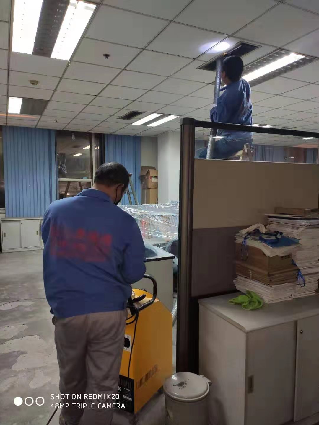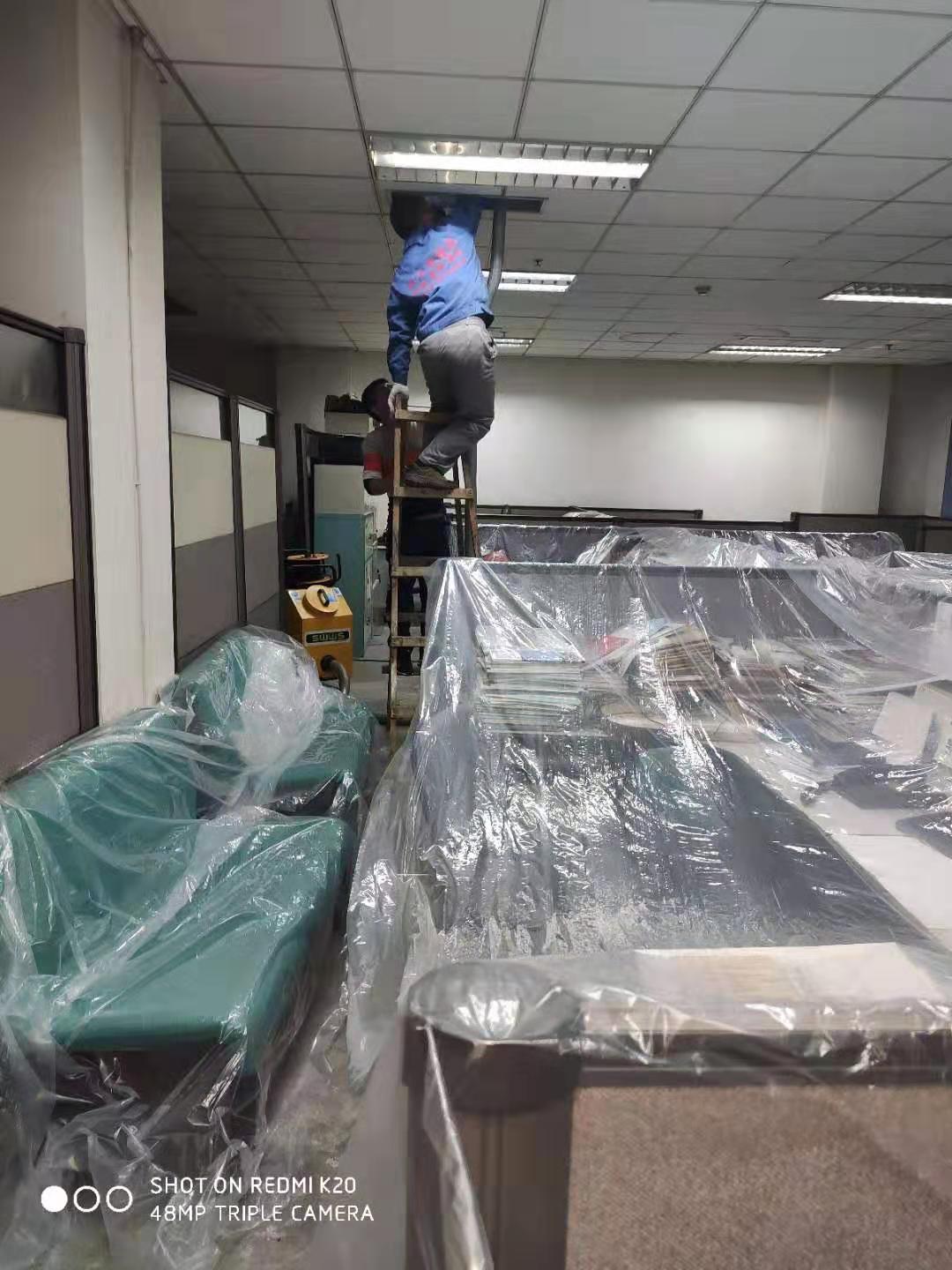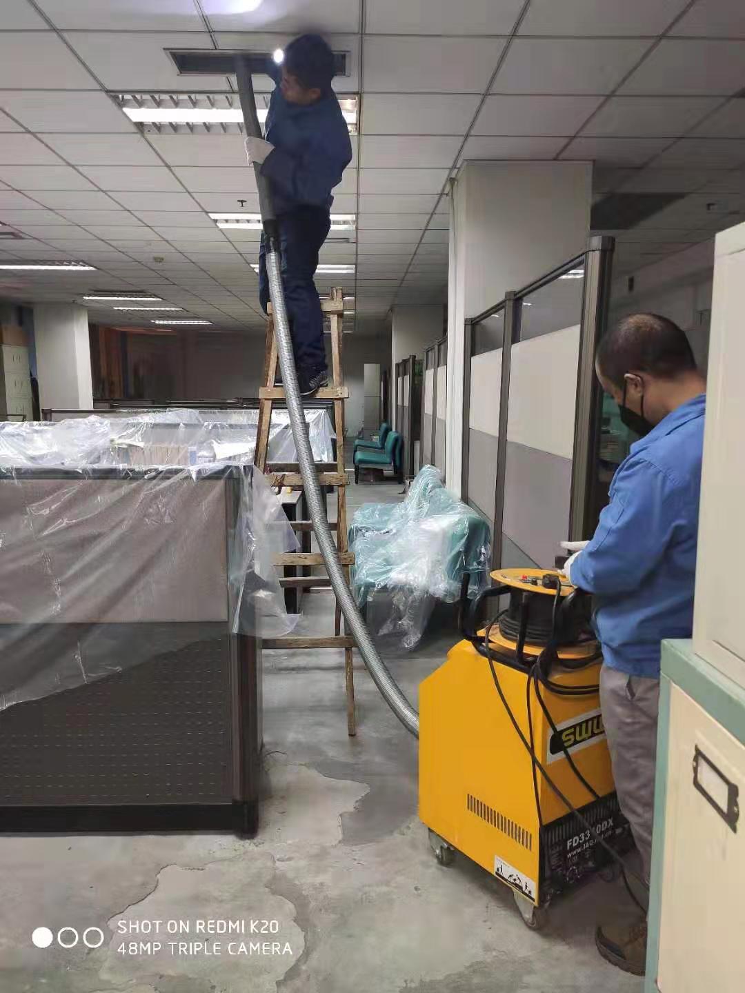 地奧藥業(yè)集團(tuán)中央空調(diào)風(fēng)管清洗消毒,師傅認(rèn)真嚴(yán)格按要求施工。